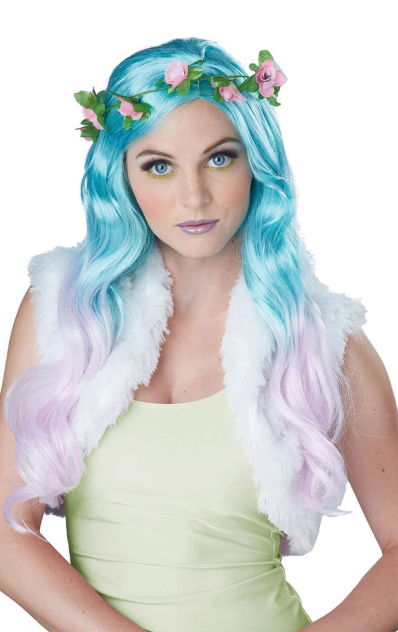 Ever wanted to tip-toe, jump and skip through the forest? Maybe you’re a springtime fairy, pastel unicorn or a magical pixie? This beautiful wavy wig ombre goes from blue into a cotton candy pink and is perfect for any fantasy costumes or comic con!