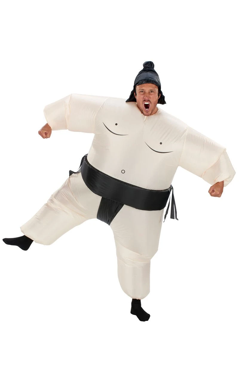 The Adult Inflatable Sumo Wrestler Costume consists of an all-in-one jumpsuit that inflates with its inbuilt pump (requires x4 AA batteries, sold separately). The costume is simply hilarious, featuring unique details, from the black pants to the Sumo’s nipples. Completing the costume is a stylish Sumo headpiece, posing as the characters hair and top knot. Are you ready to let out your loudest roar and push others around?