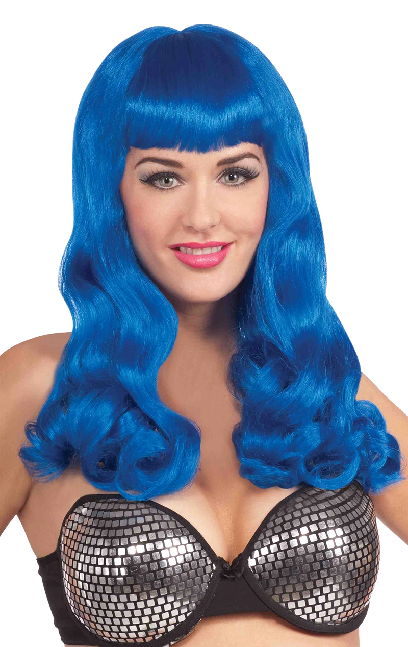 The California Girl Wig has long dark blue faux hair with a gentle wave and a fringe. Please note make up and other accessories are available separately.