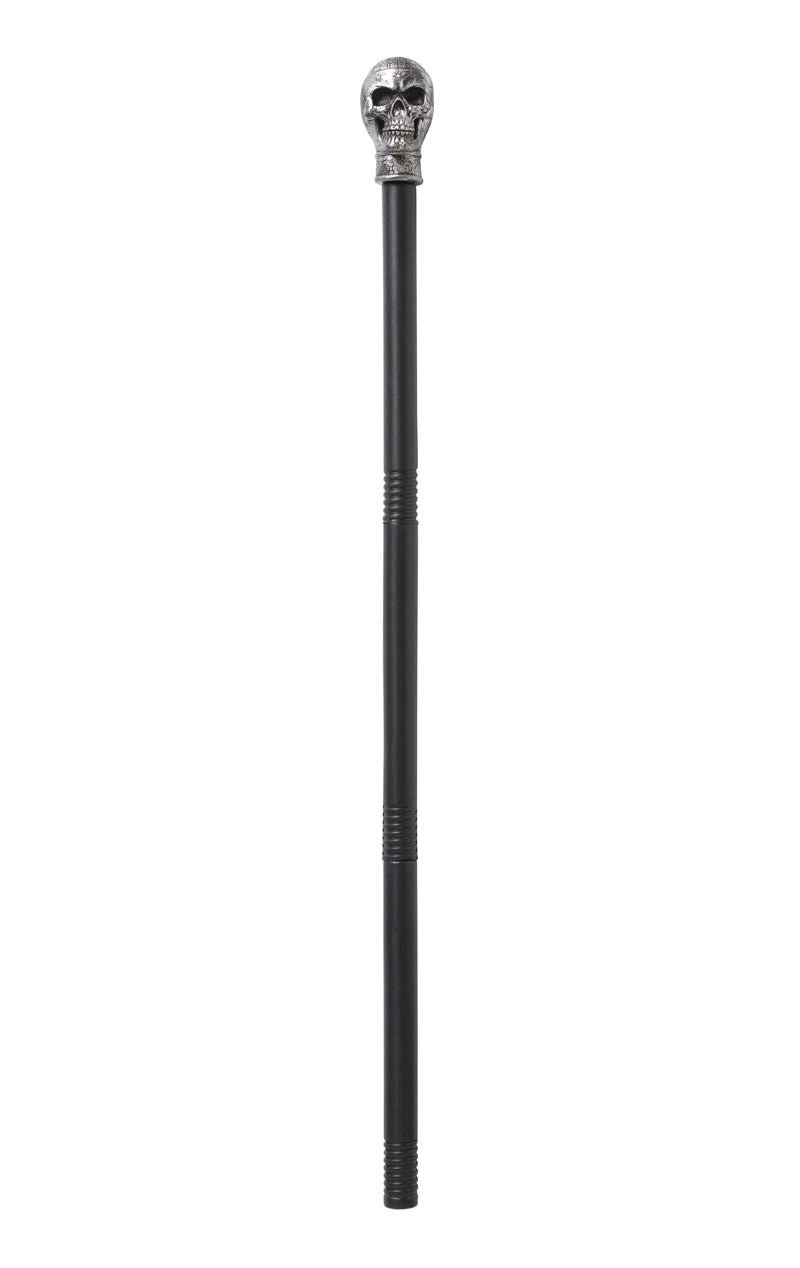The Vampire Skull Cane Accessory consists of a long black pole with a silver skull handle on top. The skull has intricate detailing all over, featuring a menacing nose socket and teeth. It’s metal-like appearance gives it a high quality finish that will pair perfectly with your costume.