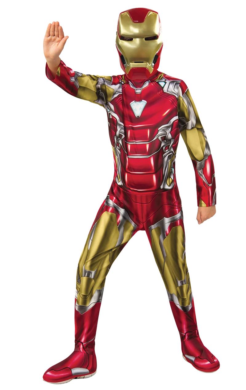 The Kids Iron Man Endgame Costume is made up of an easy-to-wear red and gold jumpsuit that’s printed with intricate armour detailing and comes complete with shoe covers. The costume also includes a metallic gold and red facepiece to give them the ultimate Iron Man look.
