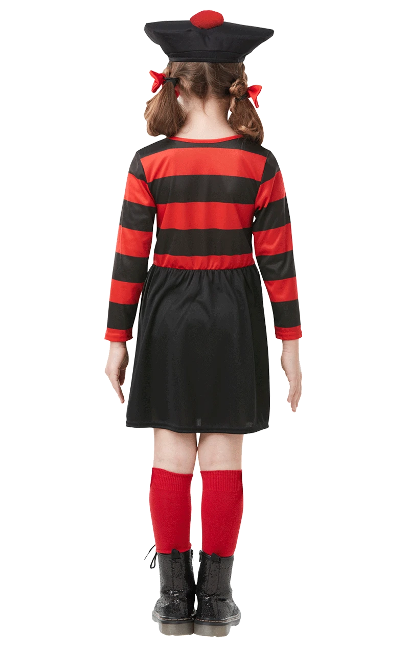 Introducing…. Hermione Makepeace a.k.a Minnie the Minx! Dress your little one up as Dennis the Menace’s cousin in our Kids Minnie the Minx Costume. Your daughter can become this mischievous Beano character who gets into brawls with the Bash Street Kids ready for World Book Day. This costume comes complete with the striped dress, featuring her iconic pea shooter, a pompom hat and matching hair bows. Whether your child knows of Dennis the Menace & co from the Beano comic books or from the after school cartoons, these characters are a classic World Book Day Costume for kids around the globe!