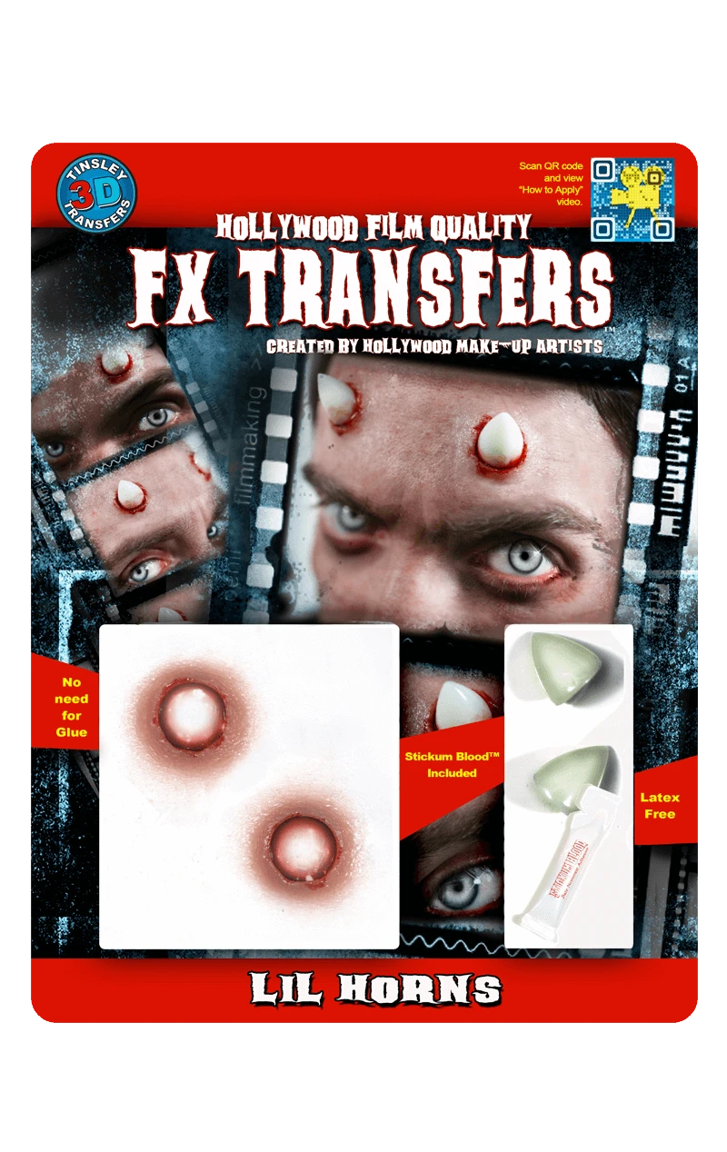 Fancy giving Hell Boy a run for his money in the horns category? Want to scare people with some realistic forehead spikes as a homage to beelzebub himself? Grab the easy to use and easy to terrify Lil Horns 3D FX Transfers and look devilishly good this Halloween!