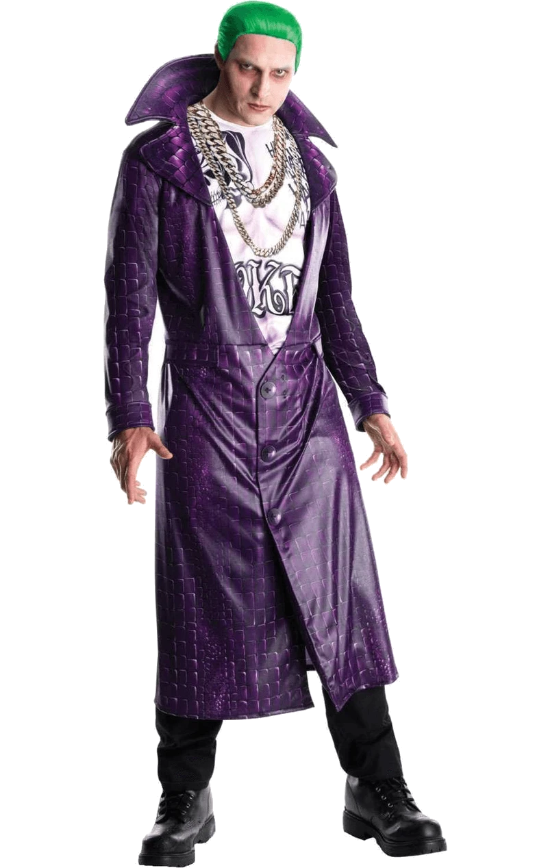 Get into character with Mens Arkham The Joker Costume, which features a long purple jacket with an attached printed t-shirt. The costume is based on Joker’s look from the Suicide Squad movie and many of his outfits in the comic-book series.
