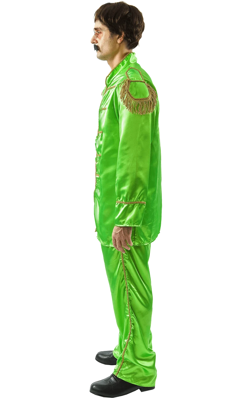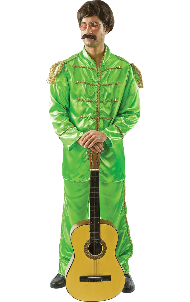 The John Lennon Beatles Costume is made up of a vibrant green silk-style jacket. It features gold rope detailing down the centre and golden tassels on the shoulder pads. The costume also comes with a matching pair of green trousers and giving an explosion of flair to any party theme. Nobody will be able to miss you grooving on the dance floor!