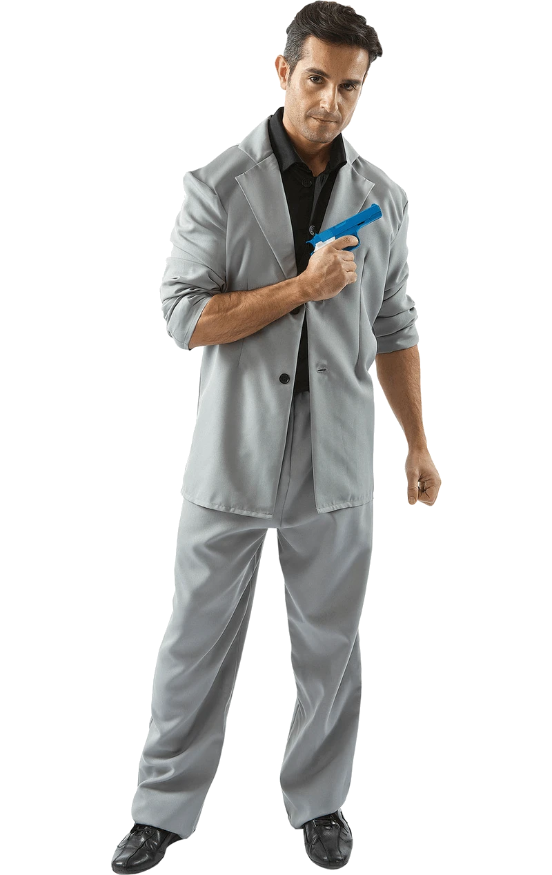 The Mens Miami Vice Rico Tubbs Costume is made up of the iconic grey suit jacket and matching trousers, as well as a black shirt. You’ll have everything you need to re-create the classic 80’s detective look. Simply pop on some aviator shades for that added accessory value.