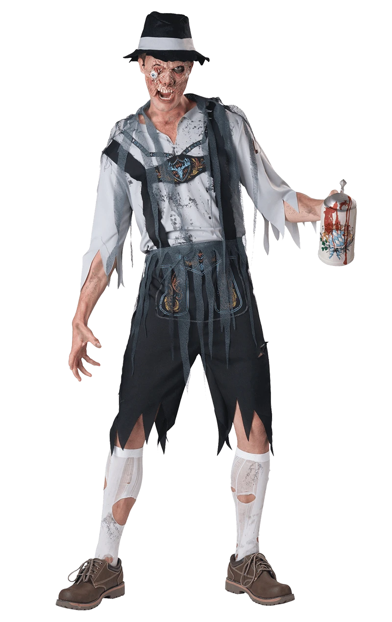 Want to do something really cool this Halloween? How about combining the Bavarian beer swinging enthusiasm of Lederhosen and Oktoberfest with that of being a zombie! Scare away with the Mens Oktoberfeast Zombie Costume, where party goers will realise you won’t just be looking for pretzels and bratwurst sausages to munch on…