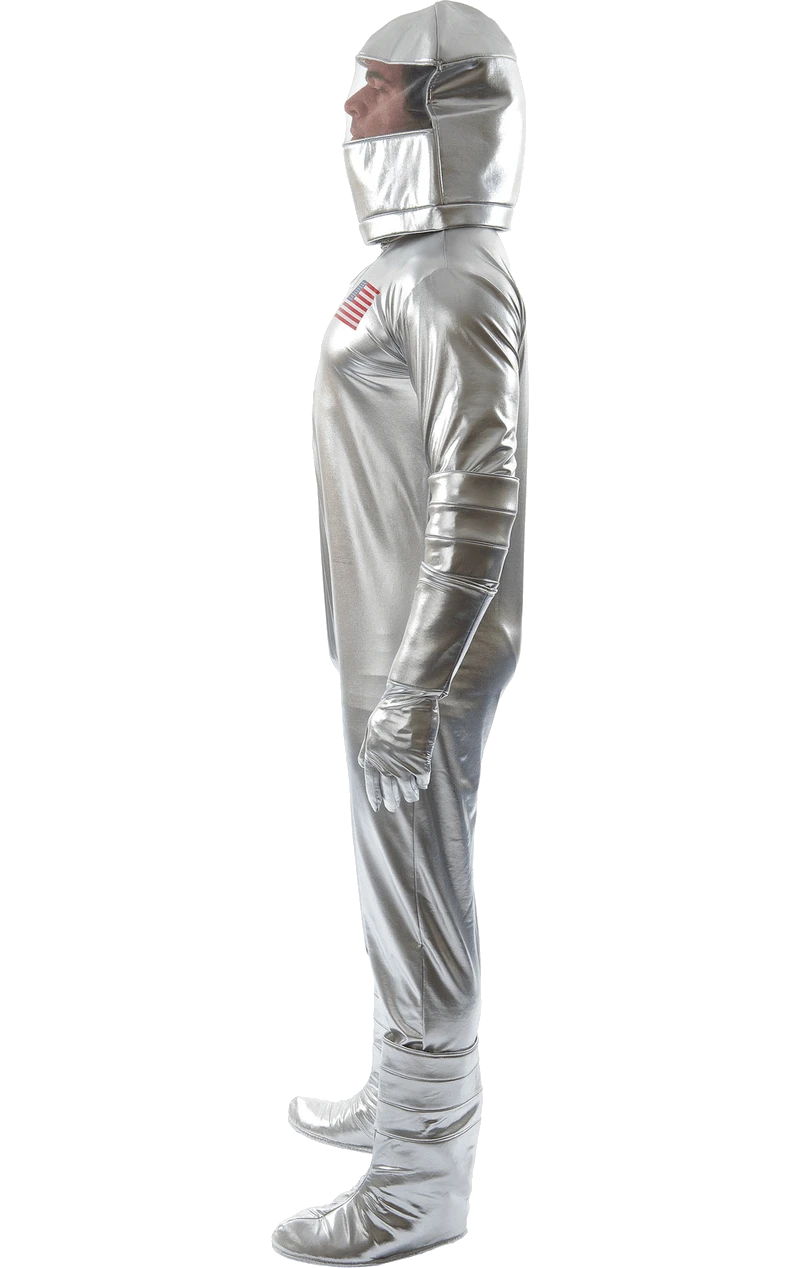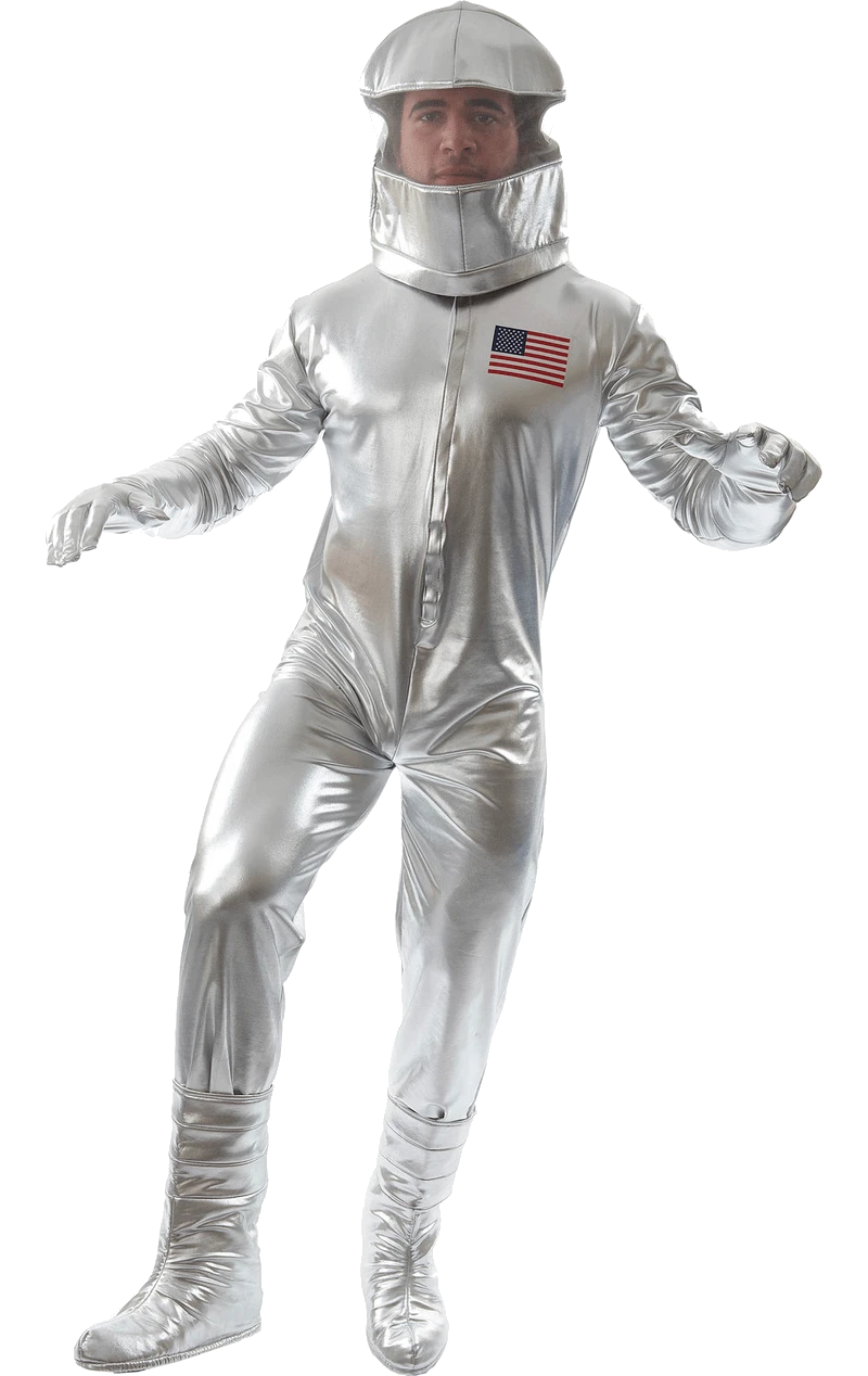The Mens Traditional Silver Astronaut Costume is made up of a silver metallic that has an American Flag Printed on the left of the chest. It also features matching boot covers and gloves. Completing your ‘out of this world’ look is an over-head helmet with a clear visor, giving you everything you need to jump in your space shuttle and head off to another galaxy.