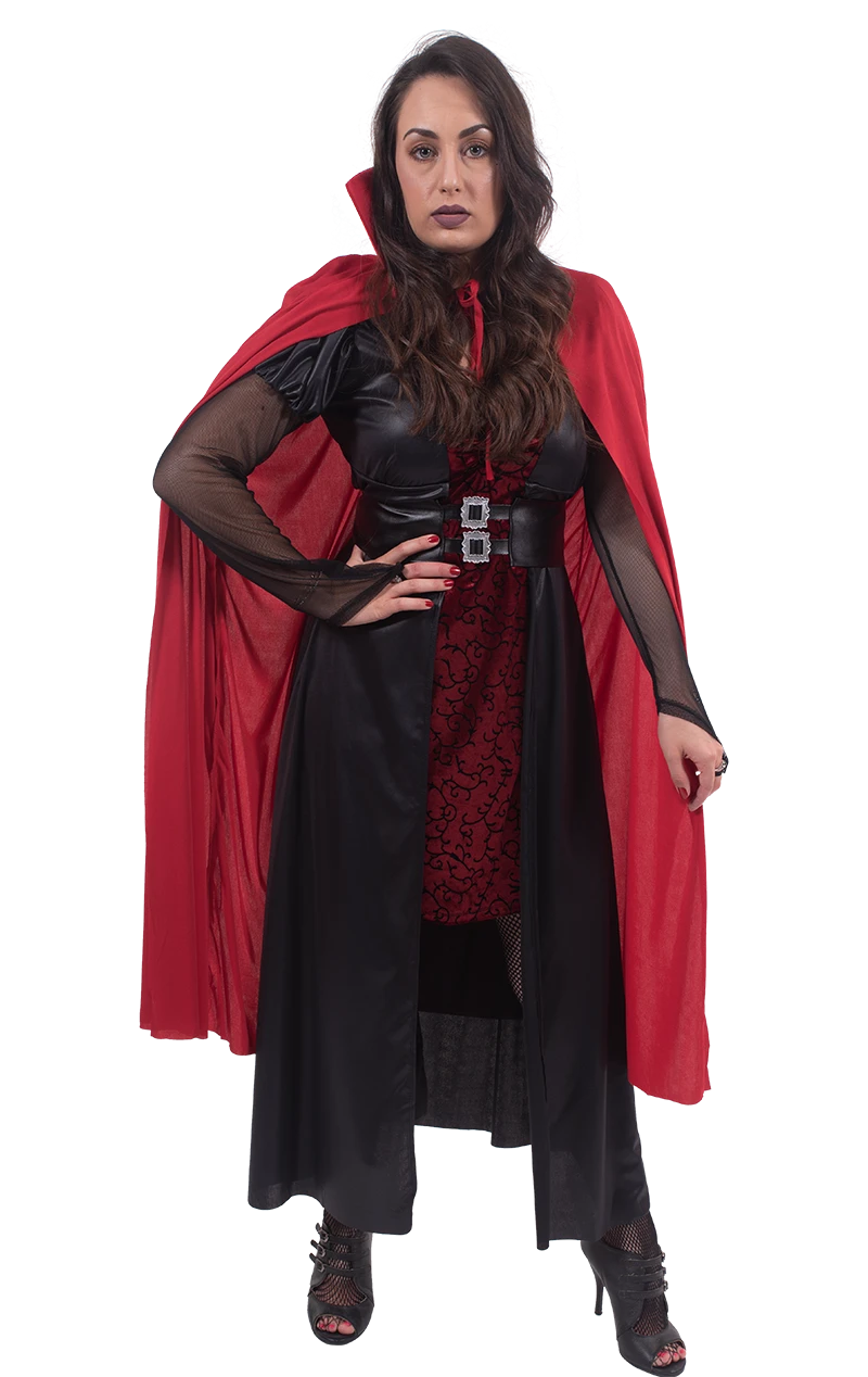 Check out this bright crimson coloured cape, perfect for flying, swooping, dramatic exits and lingering! Don your facepiece and drink some blood, it’s time to get this party started Halloween style!