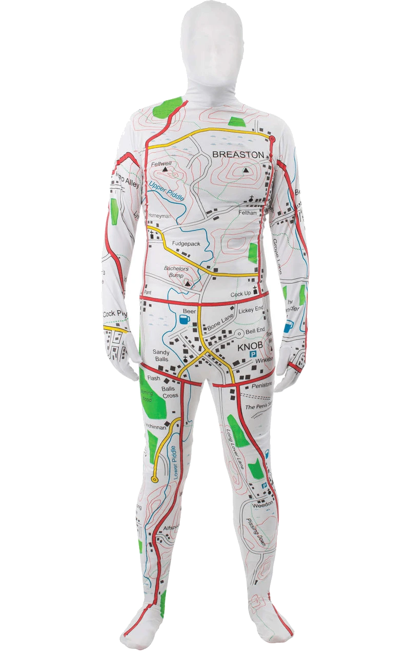 For someone that loves to spend all their time searching rudely named locations on Google, you’ll love the Rude Map Body Suit Costume. Featuring favourites such as Sandy Balls, Lickey End and Penistone, this Bodysuit is sure to make you laugh!