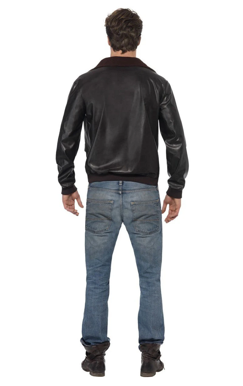 ** Mens Top Gun Maverick Jacket, although appears black in the image, is a deep shade of brown pleather with a soft fleece collar.** Transform yourself into Maverick, the coolest 80s aviator pilot of all time. Simply slip on this signature faux leather jacket and you’ll be all set to feel the need, the need for speed! Top Gun is an 80s movie classic and this official, licensed jacket is so versatile, wear it to army or uniform themed parties, as well as movie nights or 80s themed dos. It features a zip-up front and badges on the chest and left arm, including the American flag and the Top Gun logo