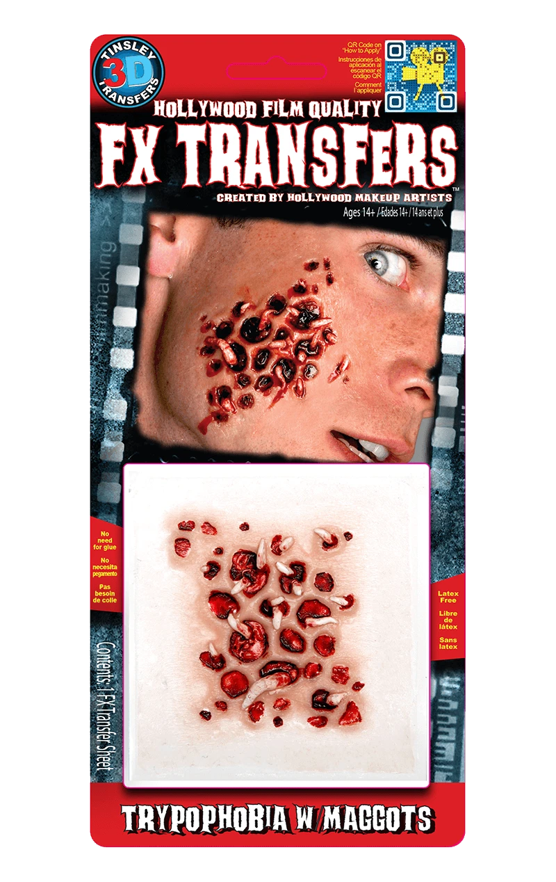 Created by Hollywood artists, these special FX transfers are the most realistic wound effects available on the market. They apply easily to the face or body with water and will stay firmly on your skin all day and night.